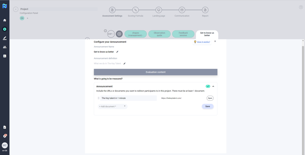 Once you have defined the questions, click on save to finish configuring the tool.
