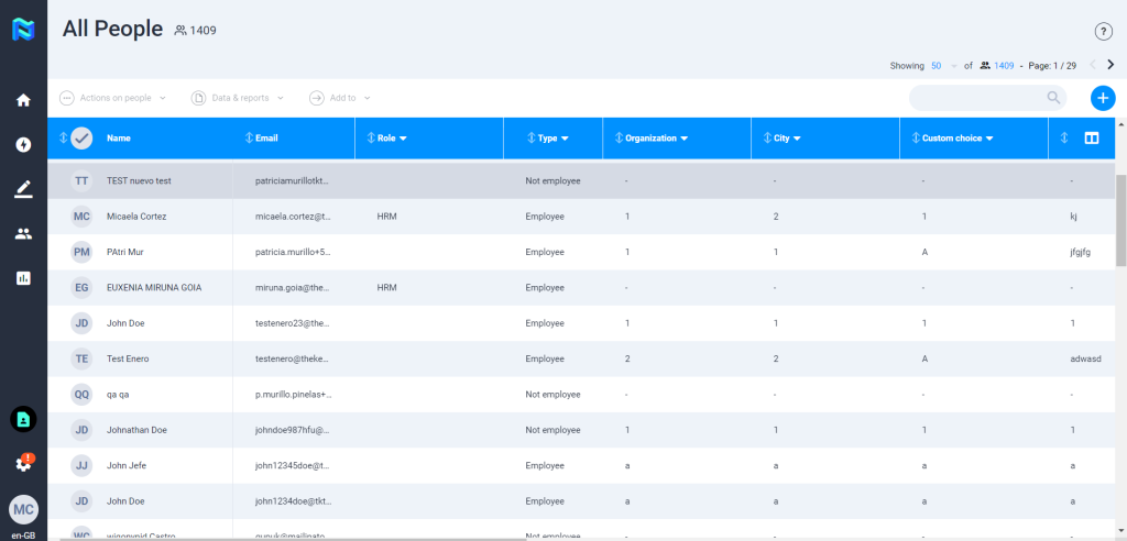 If you click on the Directory icon, you will be able to see a table with all the people in the platform, including employees and not employees.