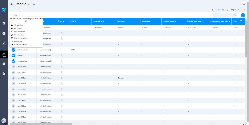 Haciendo clic en «Directorio de personas» accederás a la tabla de personas donde encontrarás el número total de las personas que existen: empleados, candidatos, externos o con roles administrativos.