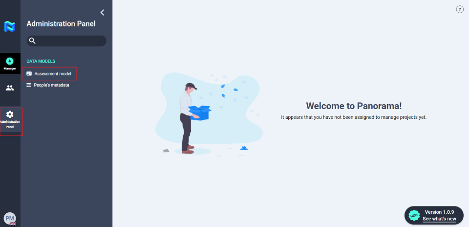 En esta sección podrás configurar el modelo de evaluación que usarás en tus proyectos. Para empezar, haga clic en “Modelo de assessment”.