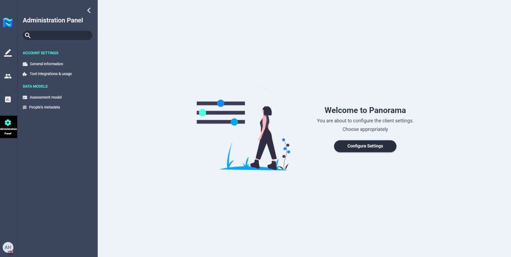 Podrán configurar las opciones de movilidad y las preferencias de los participantes que aparecerán en el HUB, crear o modificar las variables de evaluación y sus relaciones con las herramientas de evaluación, así como crear las coordenadas que aparecerán como metadatos para cada uno de los participantes en la plataforma. El administrador del cliente también podrá visualizar el consumo de las pruebas realizadas por los participantes de las herramientas de terceros integradas con Panorama.