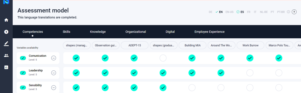 These competencies are divided and defined in levels that will later be the definitions included in the results reports delivered according to the scores obtained in the tests that measure that “competency or enabler” by a participant.