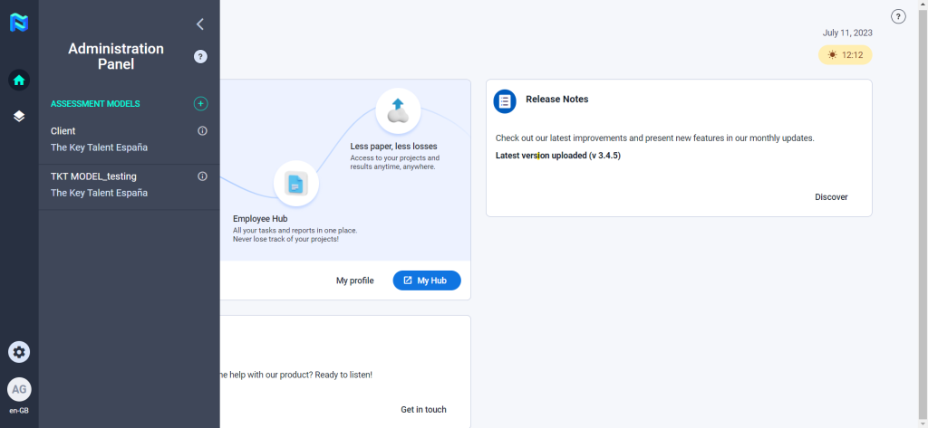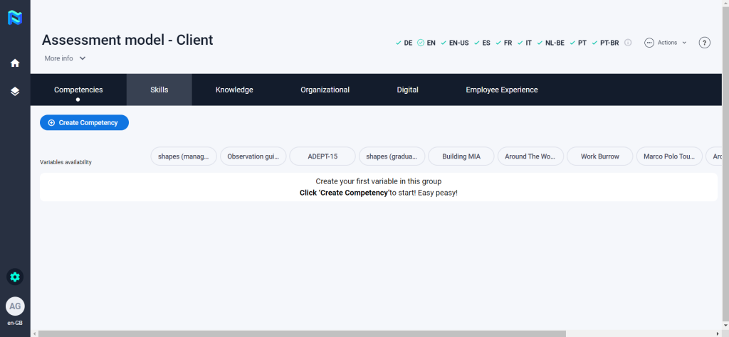 In this section, you will be able to configure the Assessment model that you will use in your projects. To get started, click on the “Assessment model” button.