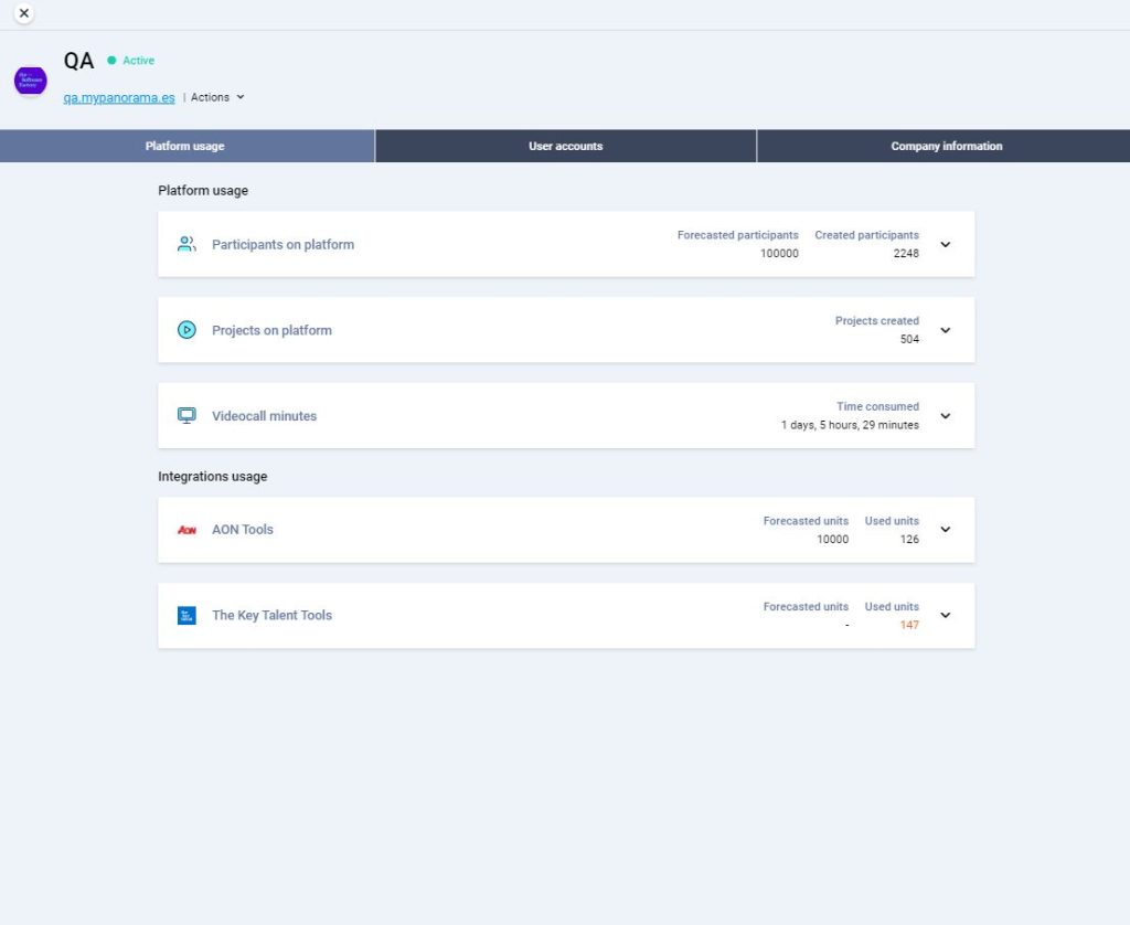 Finally, the information about the tools will be showed in the “Integrations usage”.