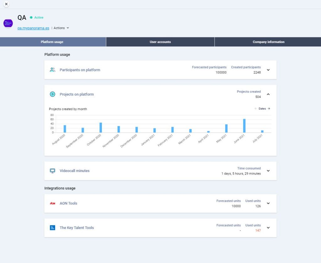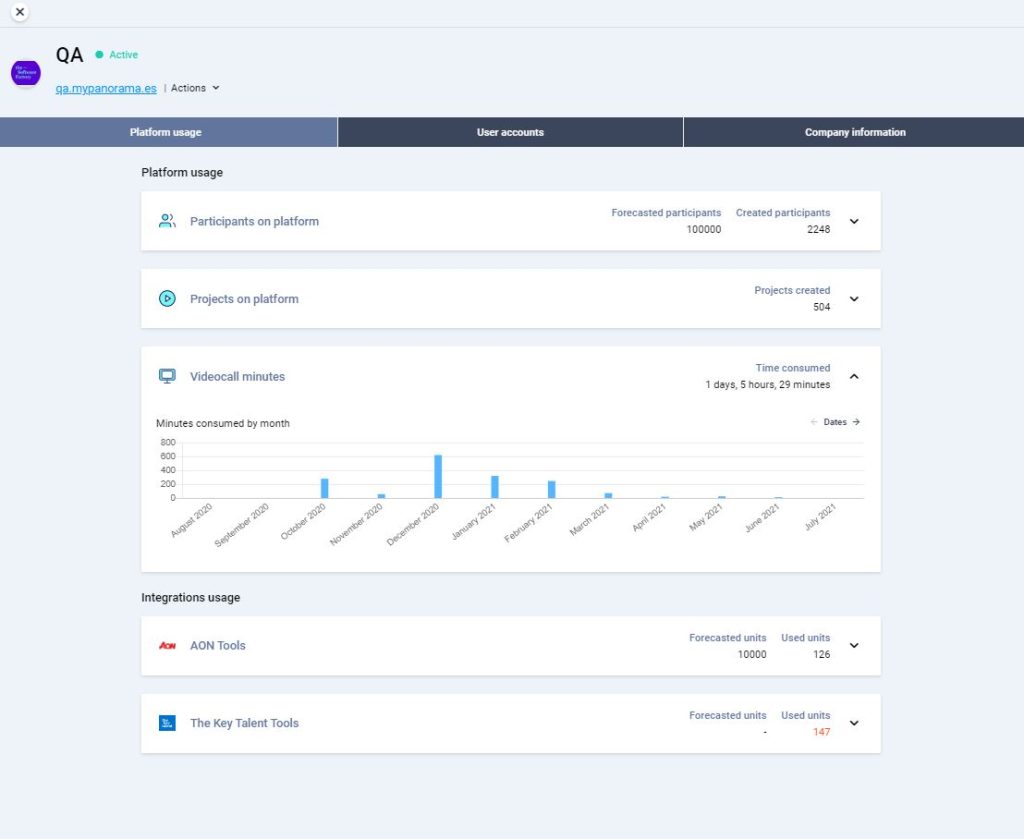 You can monitor the client by reviewing certain usage data in the “Platform usage” tab.