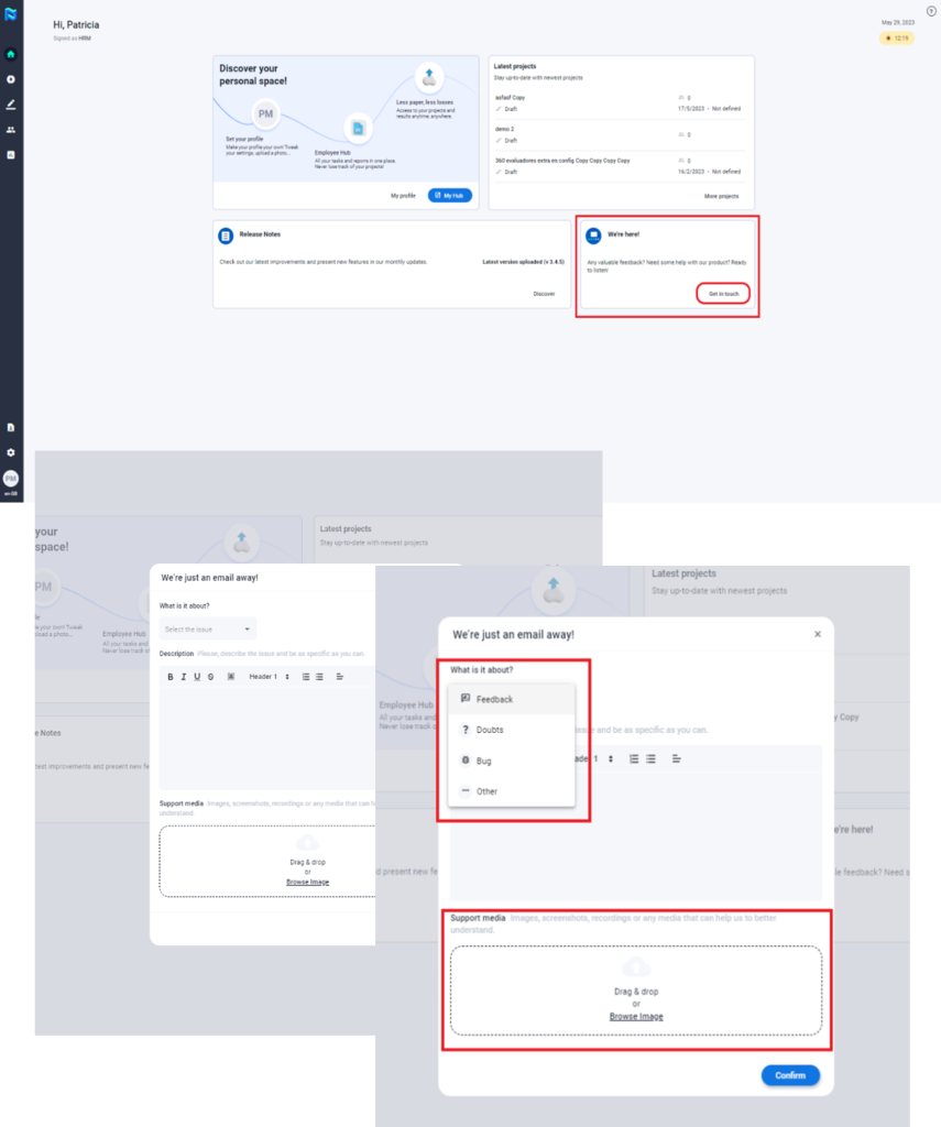 Home Page – We have activated the option to send feedback about our product to Panorama users from the platform itself. This can be done from the home screen by accessing the “We’re here” section. From here, users will be able to send us feedback, questions, bugs, or any other comments they have about the platform. These comments will be received and managed by the Panorama support team.