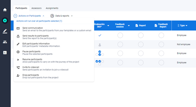 • Feedback 360 evaluation tool – We have added the possibility of making assignments to several participants at the same time and using the “smartfill” button. To use this option, it is necessary that the participants have a manager associated to them and then the system will automatically identify the rest of the evaluating groups.
