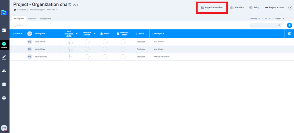 360º Evaluation – We have a new component in the project module, the organization chart.
