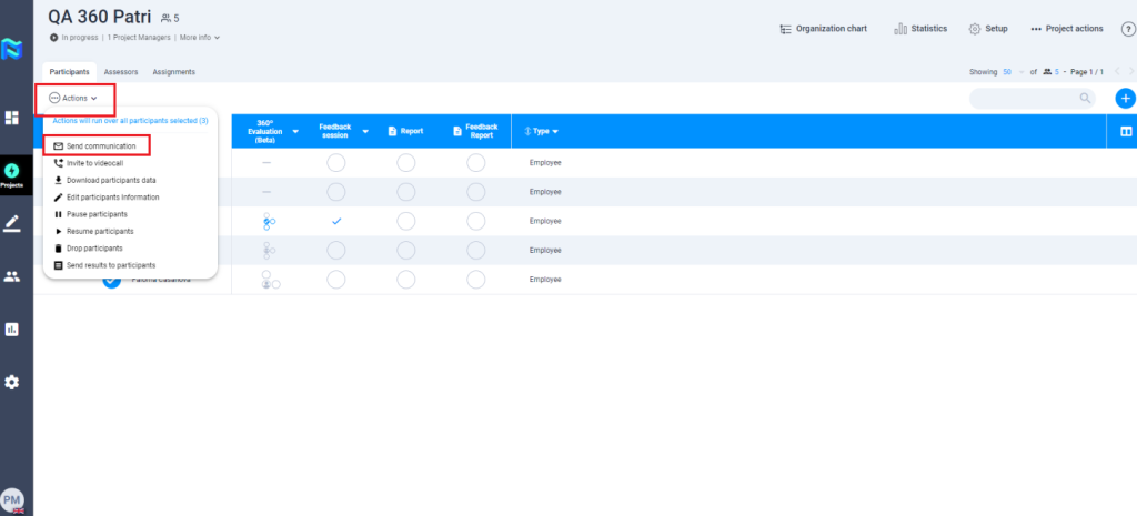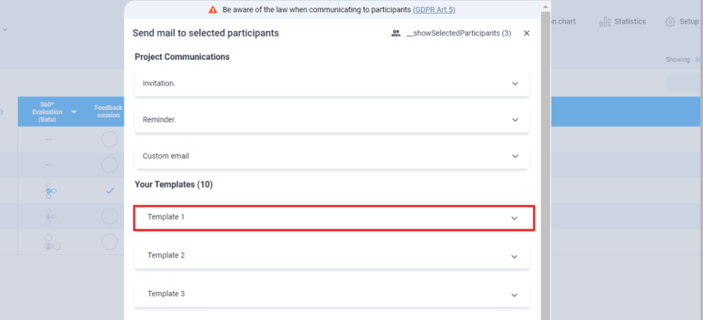 These templates can be used in bulk action from both the participant and assessor tables.