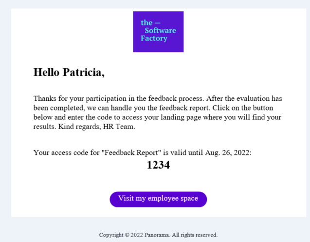 360º Evaluation – Feedback 360 report: From now on the 360º evaluation tool report will be released on the participant’s landing page after the due date of the tool. In addition, if the “automatic sending of the results report” has been activated in the tool’s configuration, the participant will receive an email informing him/her that the feedback report is available on his/her landing page.