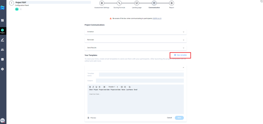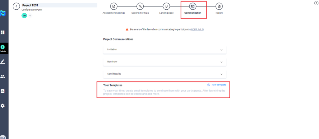 - Projects – Communication: We have made some changes to the project’s communication configuration style and added a new feature that allows you to create email templates. After launching the project, you can edit the templates and add more.