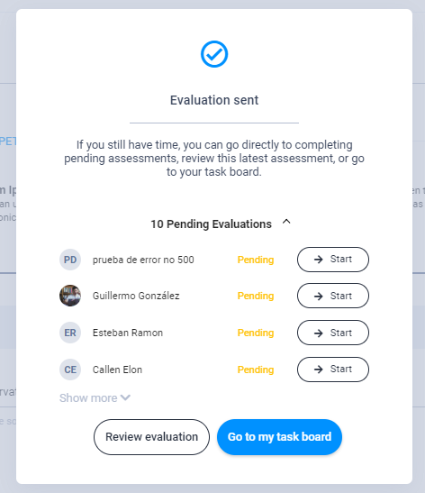 360º Evaluation – We have improved the user experience and usability of the evaluation. We will show the assessments that are still pending and give the option to go specifically to any of the assessments.