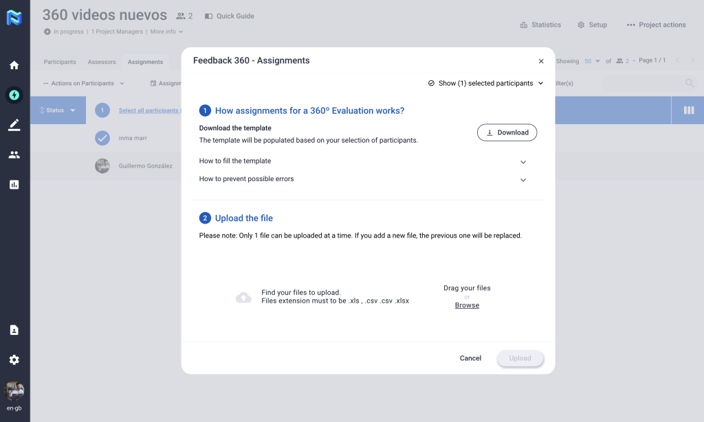 We can finally announce that it is now possible to create assignments via Excel in the 360º tool.