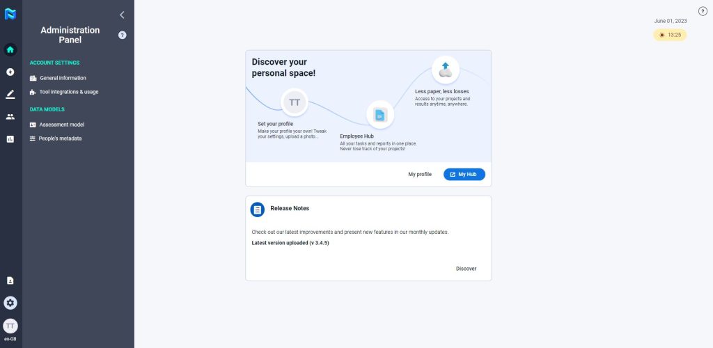 The HRM will be able to create or modify evaluation variables and their relationships with evaluation tools. Additionally, they will have access to add and modify people’s metadata within the Administration Panel.